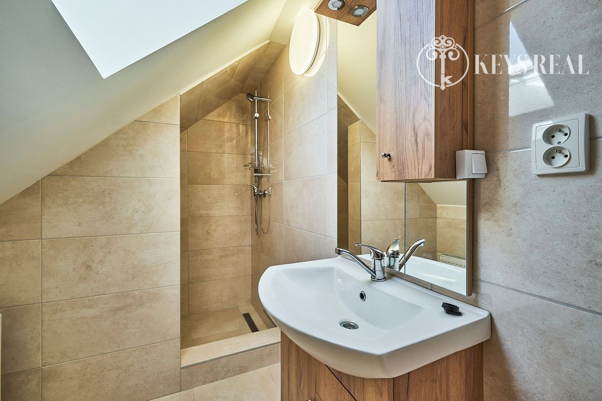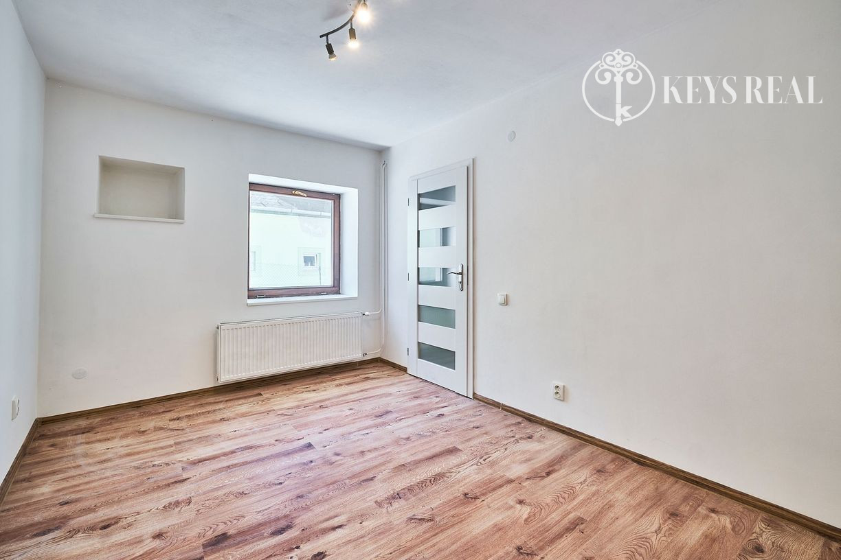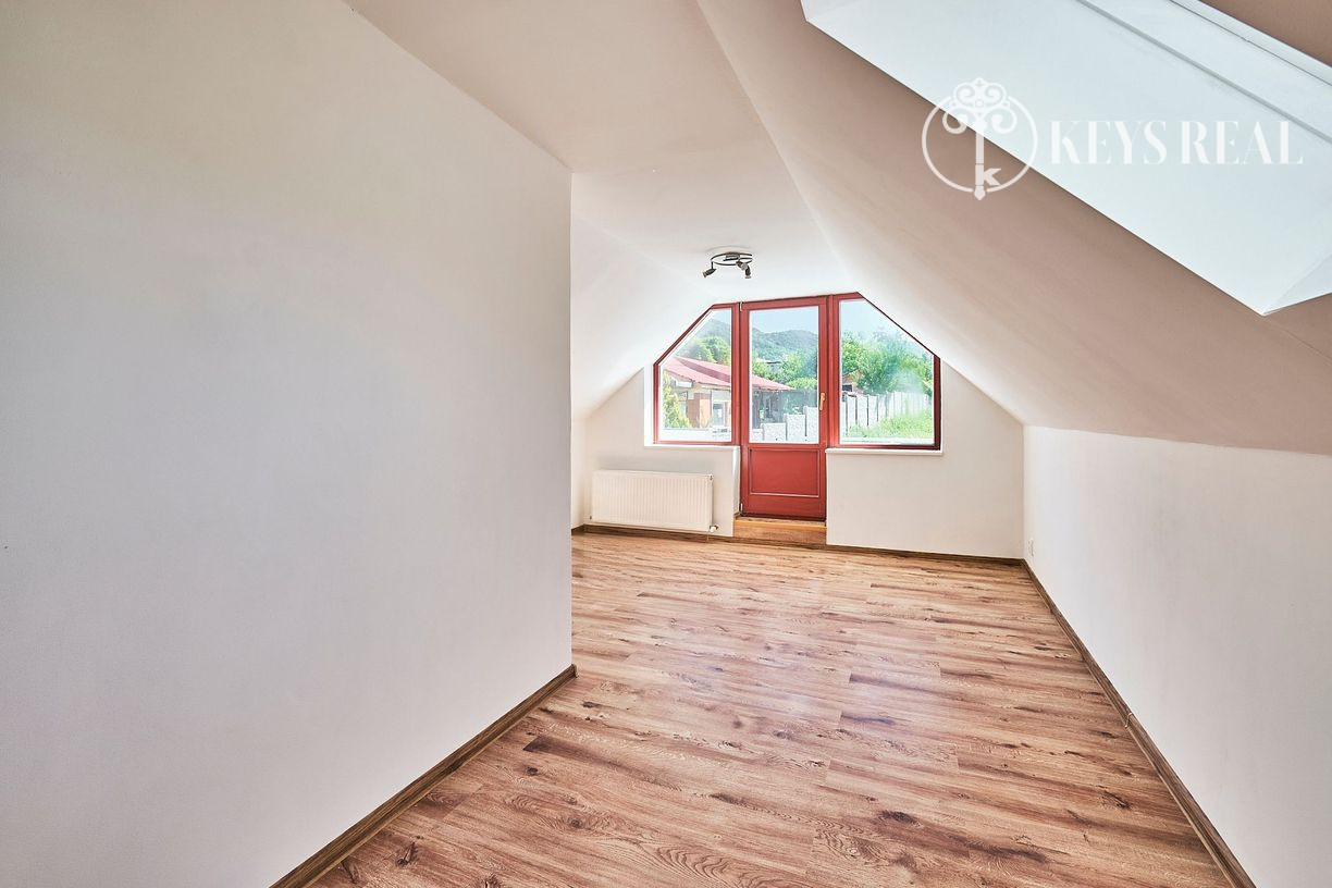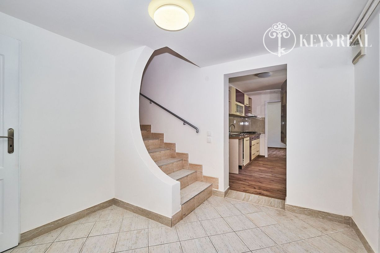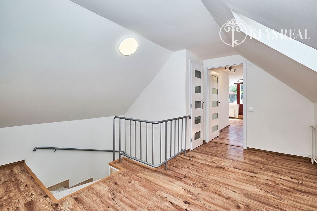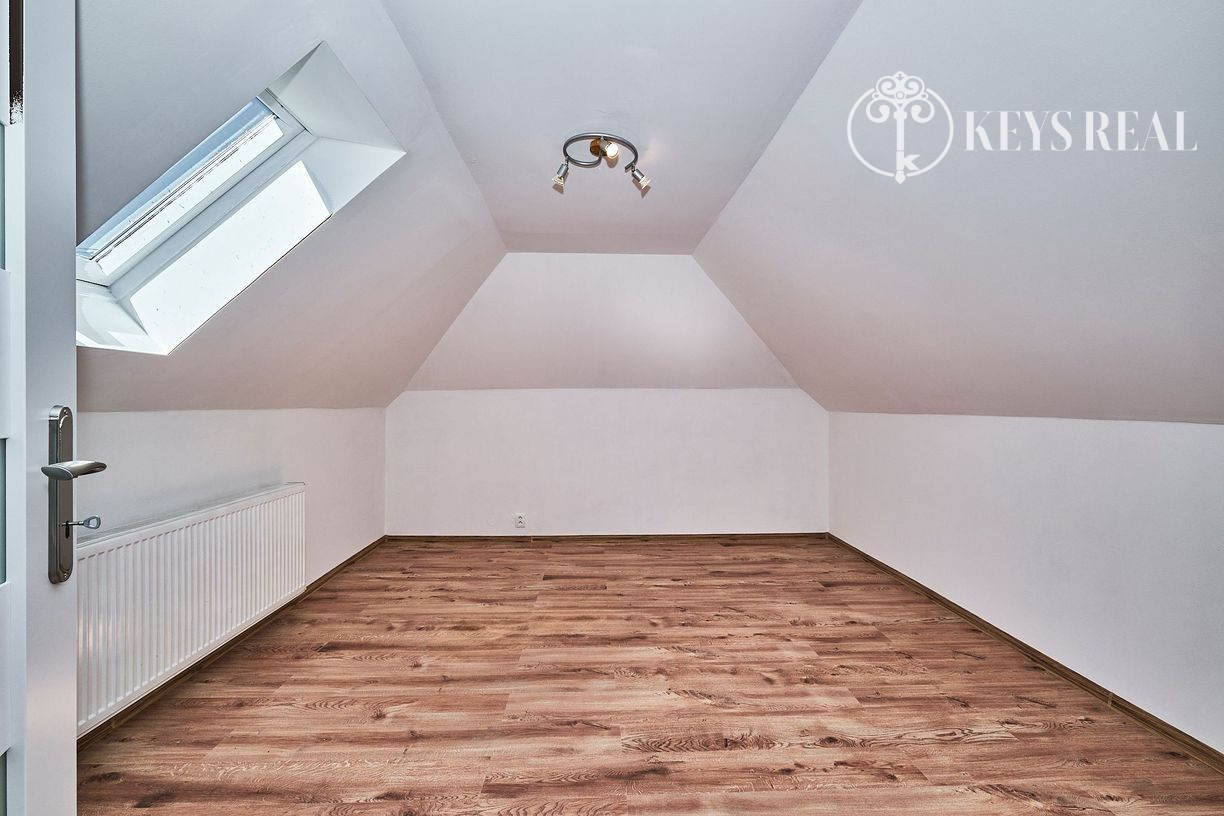 Tento navonok malý domček ponúka 4 izby + kuchyňu - na prízemí sa nachádza predsieň, obývacia izba, kuchyňa, kúpeľňa a izba, ktorá môže byt jedálňou, pracovňou, či hosťovskou izbou. Na poschodí sa nachádza ďalšia kúpeľňa s wc a dve krásne podkrovné spálne, jedna s výstupom na terasu.